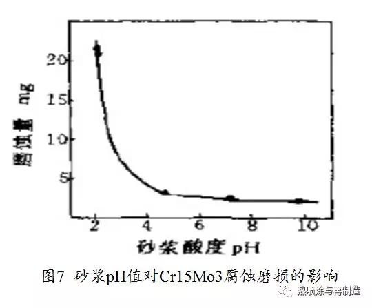 P.F.Weiser等人用CF-8鑄鐵在硫酸砂漿與單獨(dú)硫酸腐蝕和單獨(dú)濕磨料磨損條件下進(jìn)行對(duì)比試驗(yàn),結(jié)果表明,材料的腐蝕磨損速度是純腐蝕和純磨損速度之和的8-35倍。