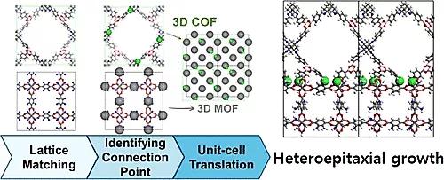 共價-有機框架(COFs)是多種能源/環(huán)境應用中具有前途的候選材料,但與金屬-有機框架(MOFs)等其他多孔材料相比,這些材料更難合成。這項研究開發(fā)了一種使用MOFs作為襯底的計算篩選算法,以便在理論上實現(xiàn)三維COFs(3D COFs)的異質(zhì)外延生長。該算法在原子/分子水平上詳細描述了MOF@COF的界面,以便使用自下而上的方法構筑3D COFs。最終,該算法產(chǎn)生了19對適合在MOF表面異質(zhì)外延生長3D COFs的MOF@COF候選材料。